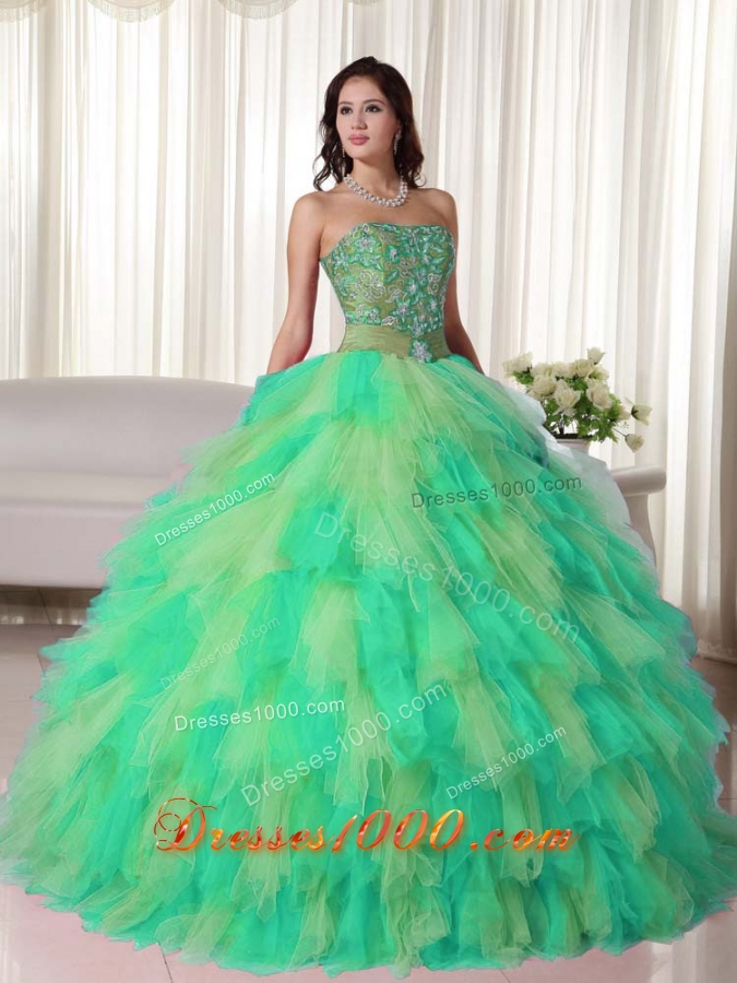 2014 Pretty Puffy Strapless Quinceanera Gowns with Appliques