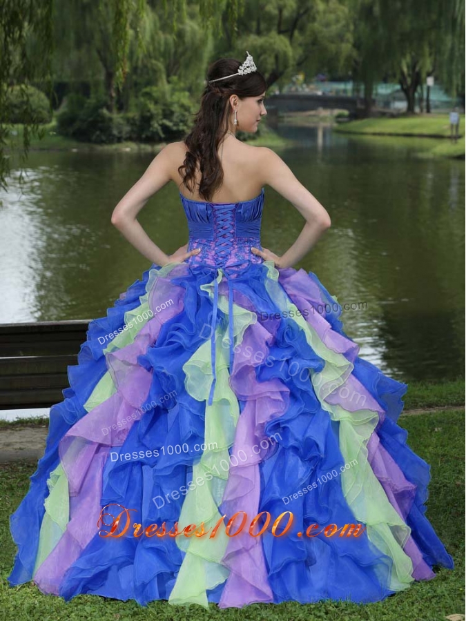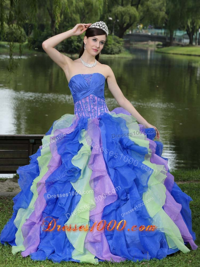 Sweet Appliques Ruffled Layeres 2014 Colorful Quinceanera Dresses