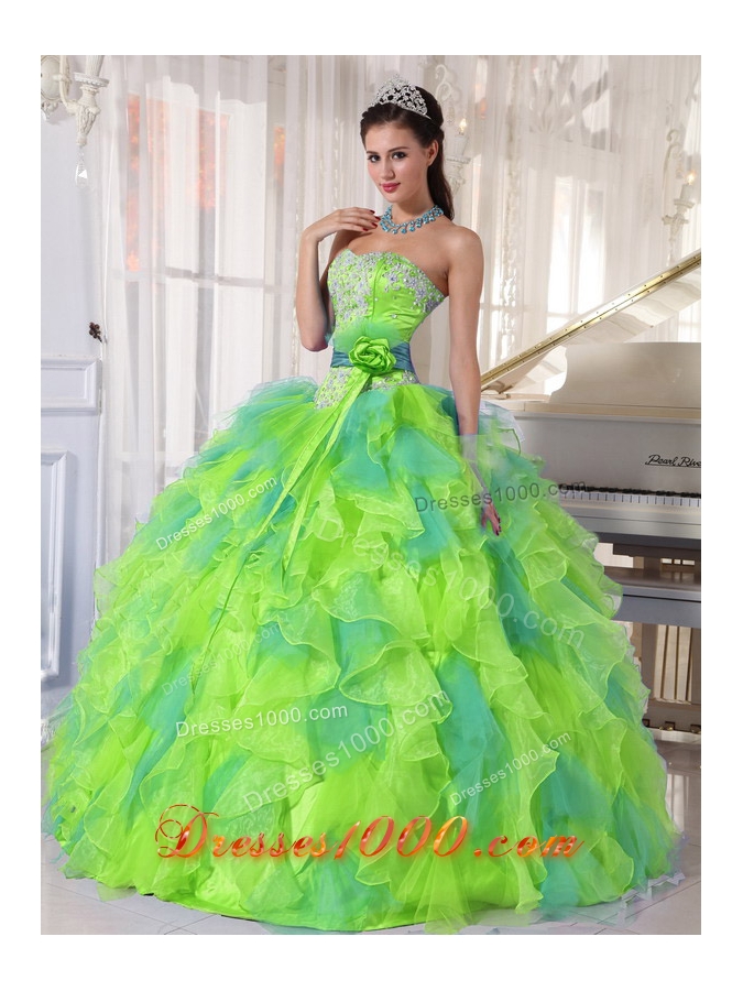 2014 New Style Sweetehart Ruffles Quinceanera Dresses with Appliques