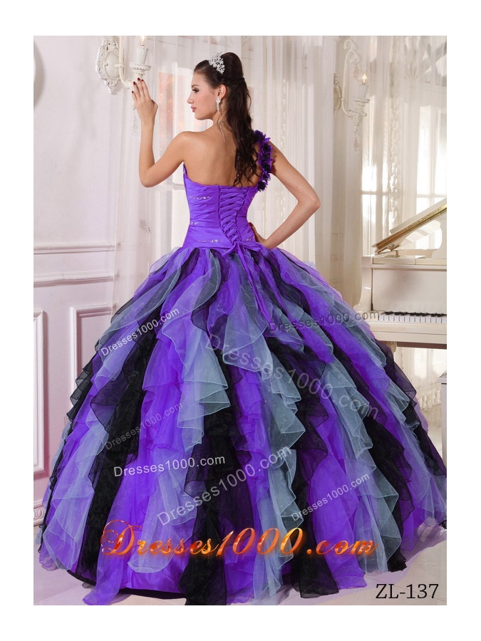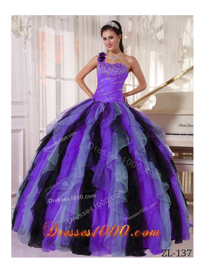 Puffy One Shoulder Beading and Ruffles 2014 Quinceanera Dresses in Multi-colored