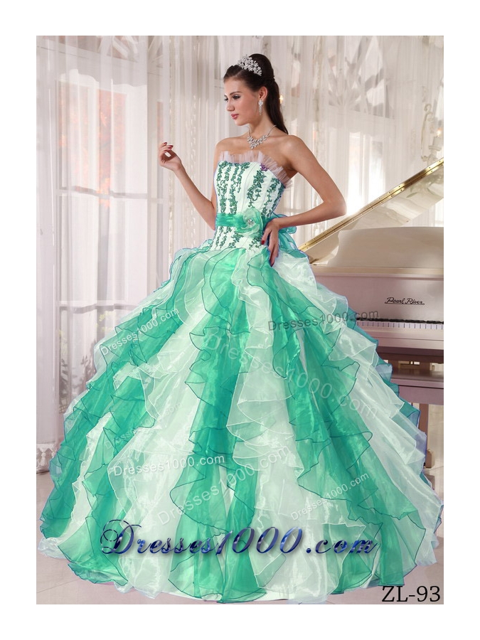 Colorful Puffy Strapless Ruffles and Beading Quinceanera Dress for 2014