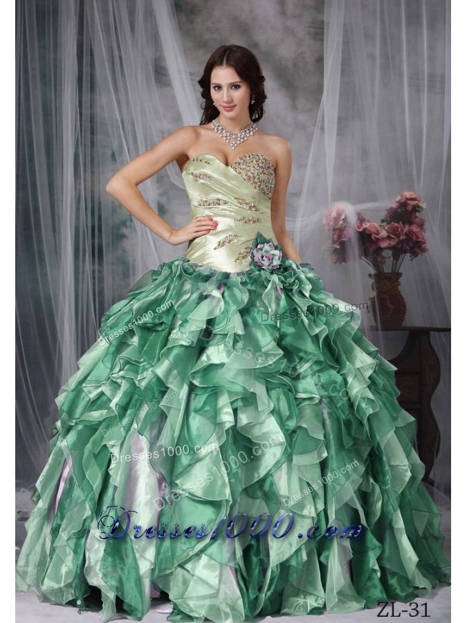 2014 Colorful Ball Gown Sweetheart Beading and Ruffles Quinceanea Dresses