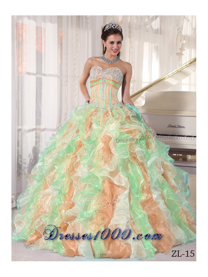 Exquisite Multi-color Puffy Sweetheart 2014 Appliques Quinceanera Dresses with Ruffles