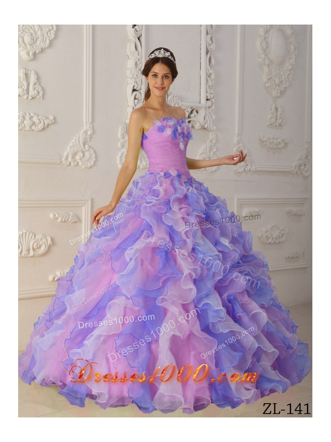 2014 Pretty Multi-Color Puffy Strapless Ruffles Quinceanera Dresses