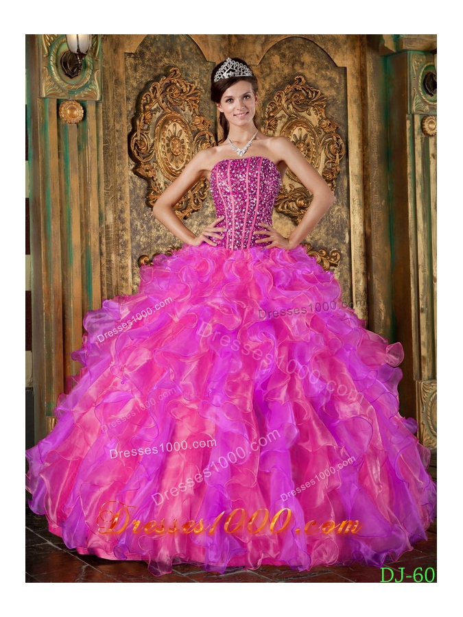 2014 Multi-Color Puffy Strapless Beading and Ruffles Quinceanera Dresses