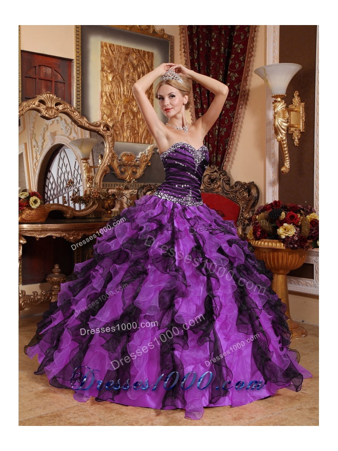 2014 Exquisite Multi-Color Puffy Sweetheart Beading and Ruffles Quinceanera Dresses
