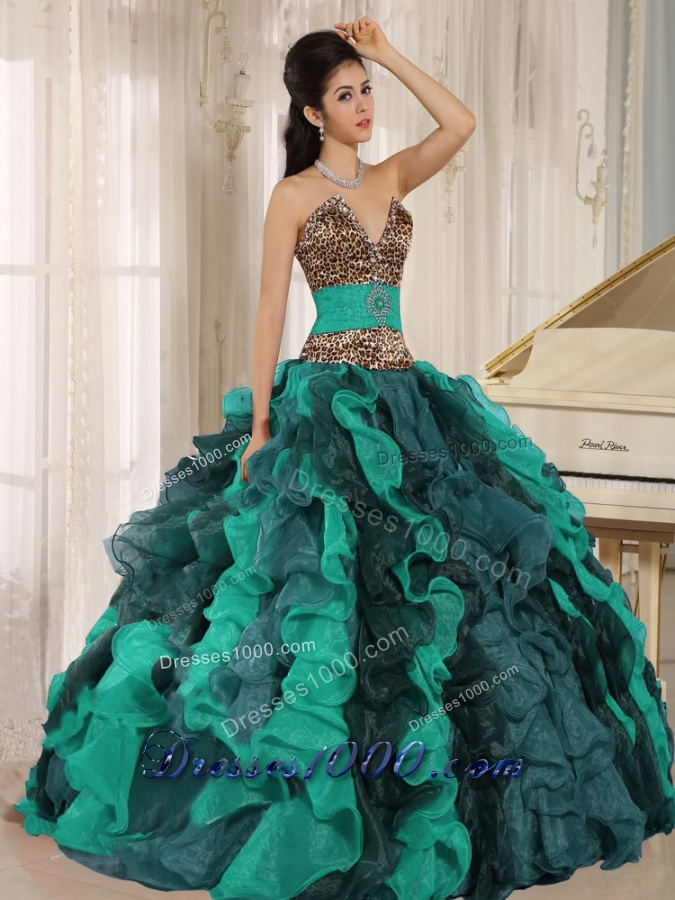 Wholesale Multi-color V-neck Ruffles Leopard and Beading Quinceanera Dresses