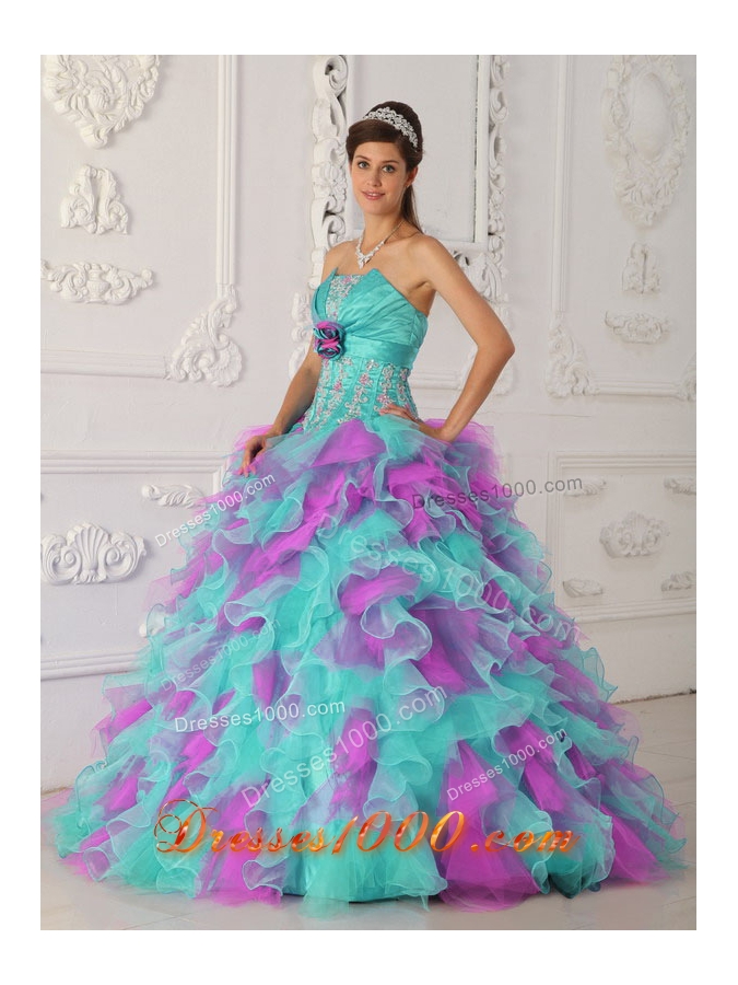 Exquisite Multi-color Puffy Strapless Appliques Quinceanera Dresses