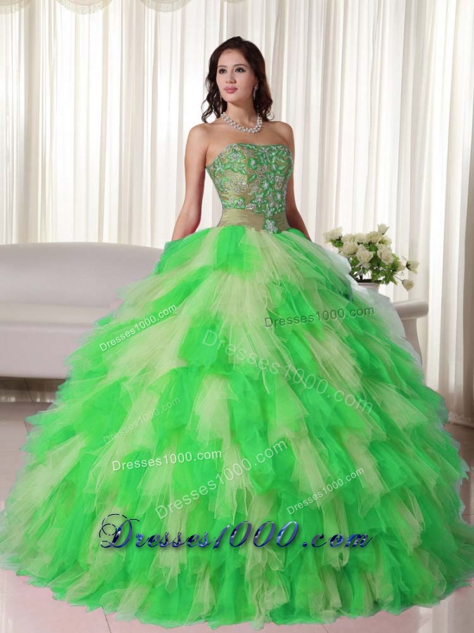 Multi-color Puffy Strapless 2014 Appliques Quinceanera Dress with Ruffles