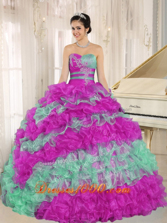 Beautiful Multi-color Ruffles and Appliques 2014 Quinceanera Dresses Sweetheart