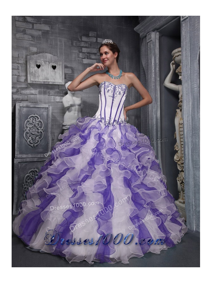 The blue and white quinceanera dress is finest example to demonstrate your attitude of elegance. It is characterized by a sweetheart line bodice with beading and embroidery all over it, which gives us a sense of luxury. The skirt are in two colors of layers, making it the most eye-catching dress. It is the perfect dress that never goes out of style.