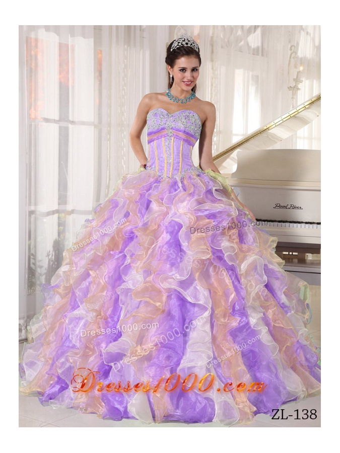 Popular Multi-color Puffy Sweetheart 2014 Appliques Quinceanera Dresses