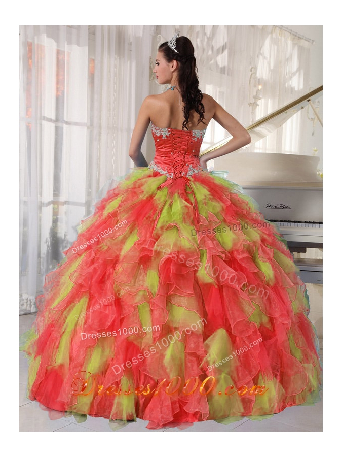2014 Affordable Appliques and Ruffles Multi-color Quinceanera Dresses