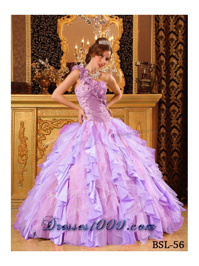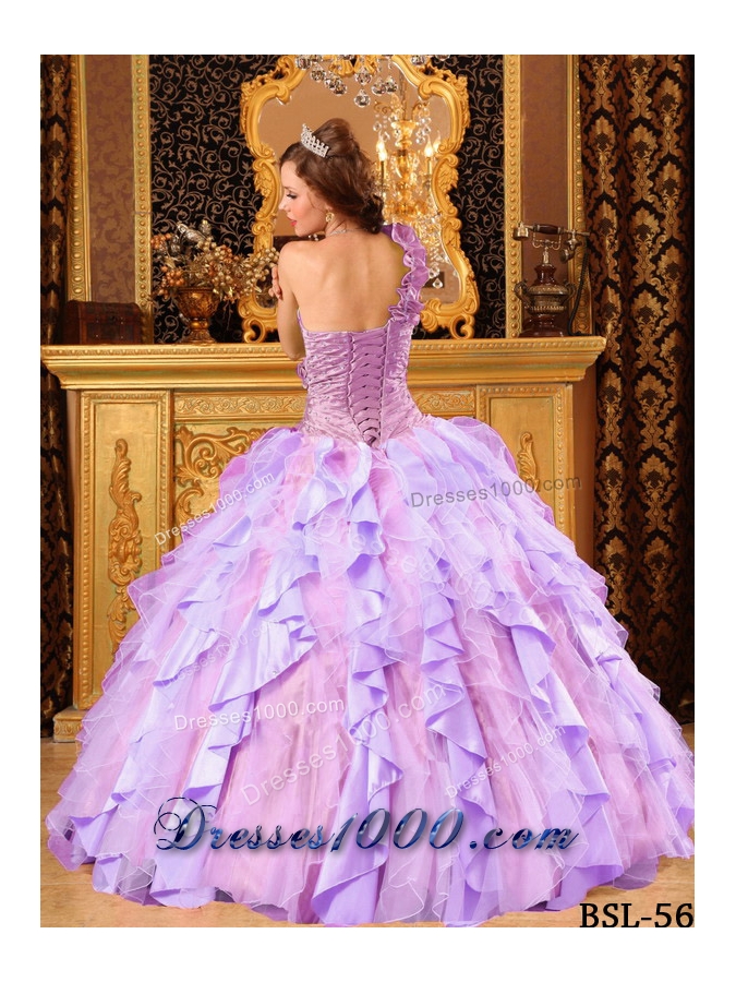 2014 Pretty Puffy One Shoulder Beading And Ruffles Sweet 16 Dresses