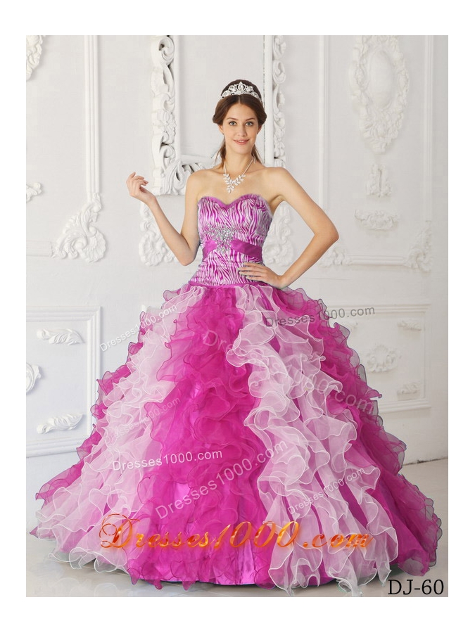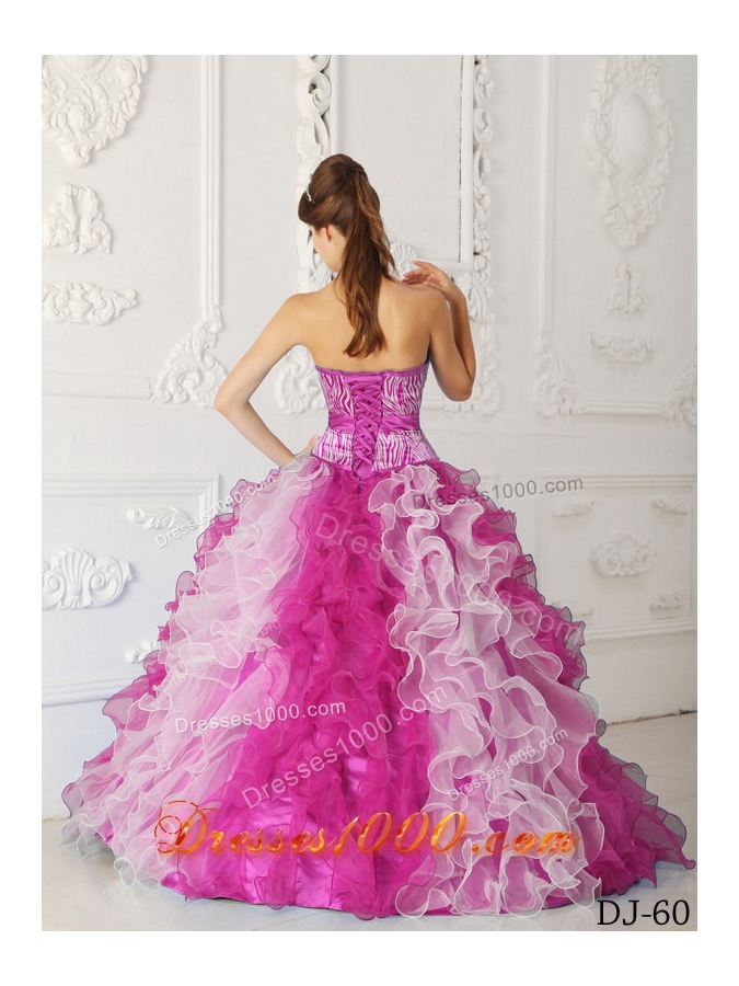 The strapless sweetheart neckline is completely adorned with crystals. The asymmetrically ruched and sexy zebra print bodice is accented with scattered crystals while the skirt features tiers of ruffles. It's a gogerous quinceanera dress,which willmake you a focus in the party.