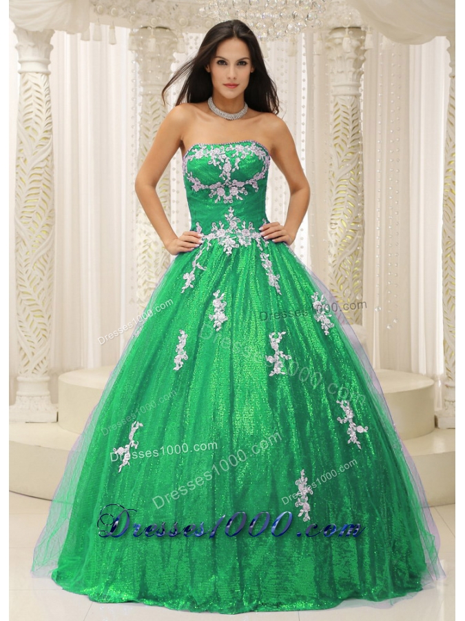 Simple and elegant strapless ball gown. A fitted, strapless bodice made of an all-over appliques scattered throughout. Pleats wrap your waist to represent your figure. You will be a hit in this gorgeous ball gown that has a zipper up back. Full tulle skirt is breathtaking. The shinning fabric makes the dress stunning and eye-catching.