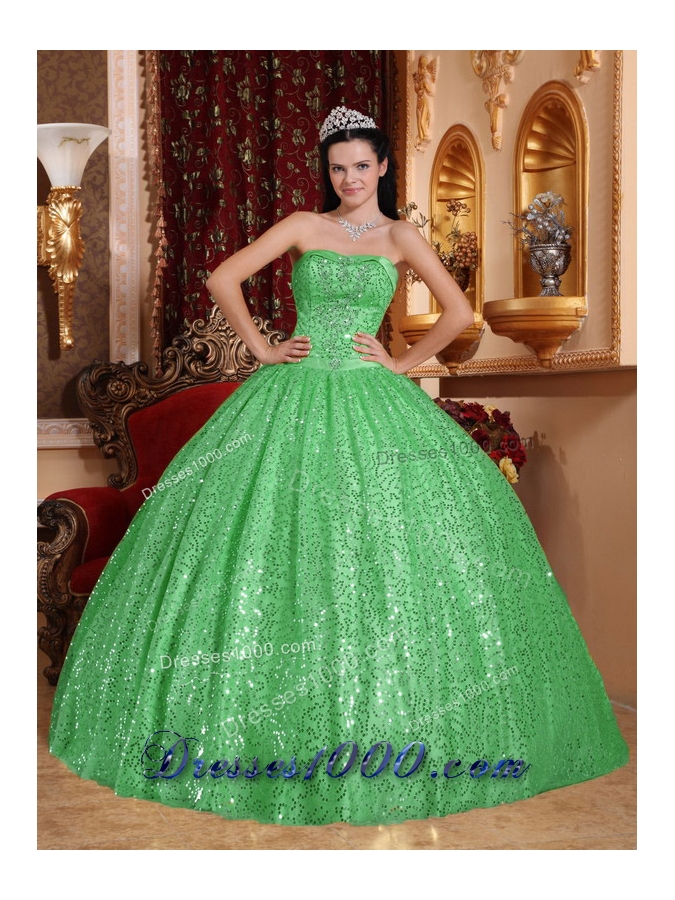 Pretty Green Puffy Sweetheart with Beading for 2014 Sequin Quinceanera Dress