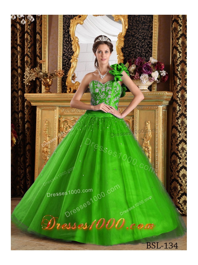 Affordable Green Princess One Shoulder with Beading for 2014 Quinceanera Dress