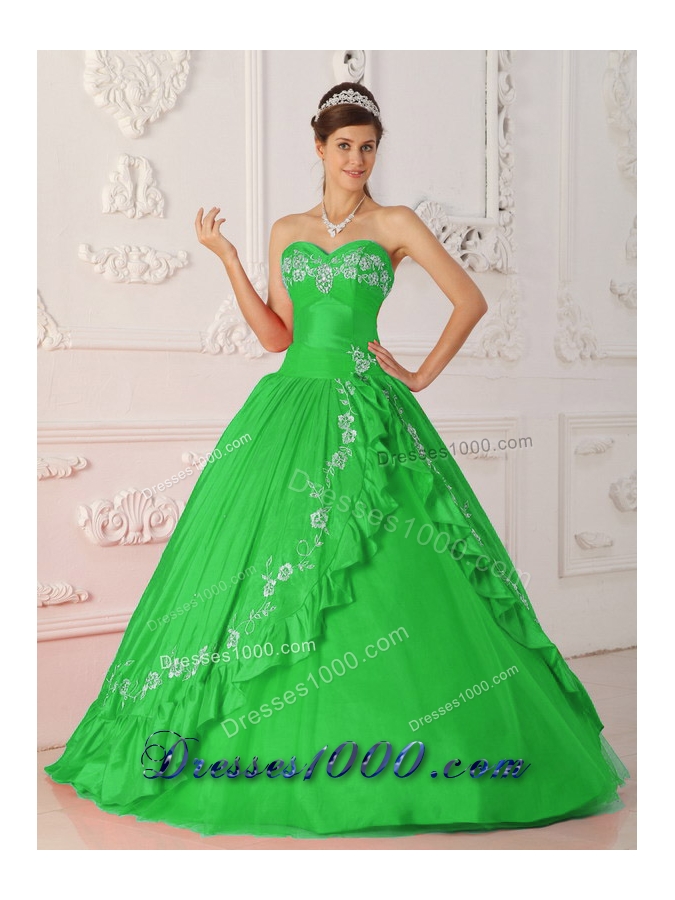 Princess Sweetheart with Embroidery and Beading Decorate for 2014 Green Quinceanera Dress