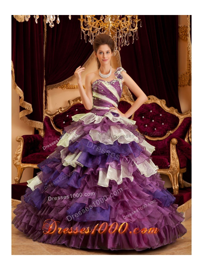 Perfect Princess One Shoulder Quinceanera Dresses with Ruffled Layers
