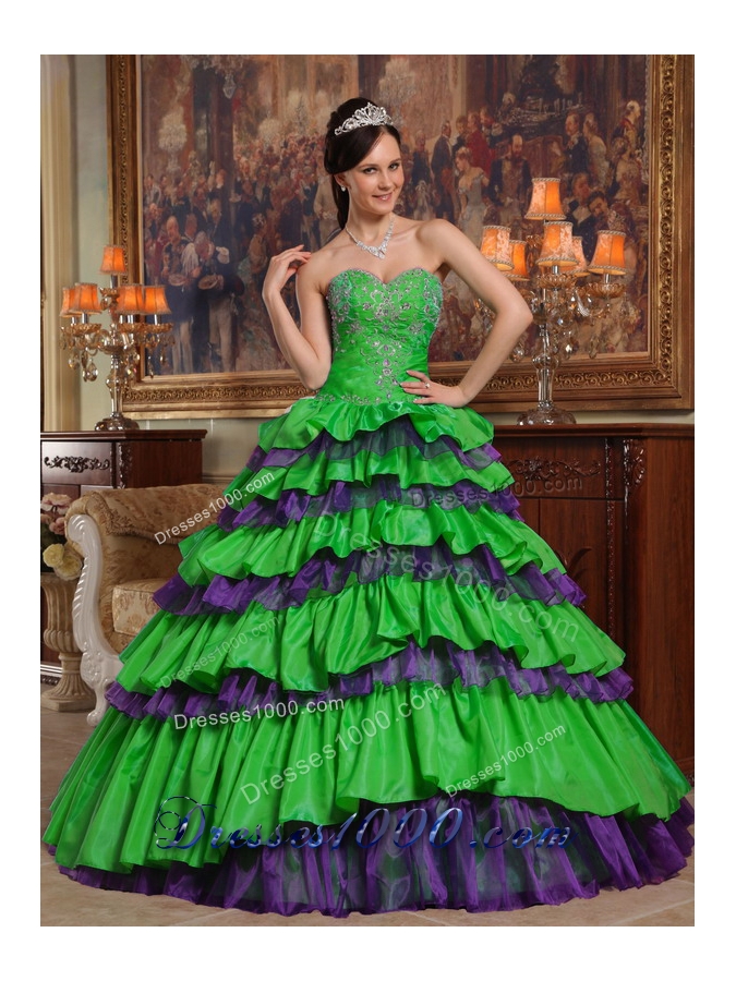 Green Puffy Sweetheart with Layers and Beading Decorate for 2014 Quinceanera Dress