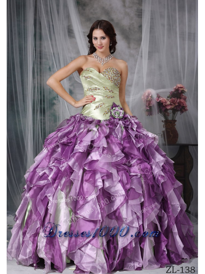 Colorful Puffy Sweetheart Beading and Ruffles Quinceanea Dresses for 2014