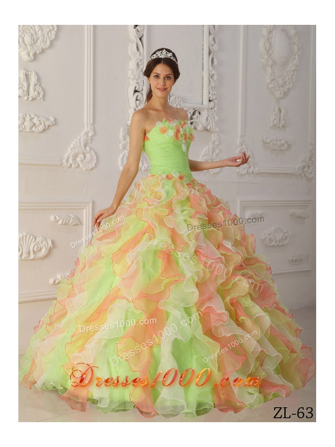 2014 Multi-Color Puffy Strapless Ruffles Quinceanera Dresses