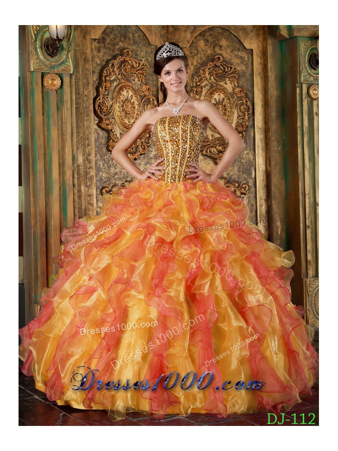 Multi-Color Puffy Strapless Ruffles Quinceanera Dresses with Beading for 2014