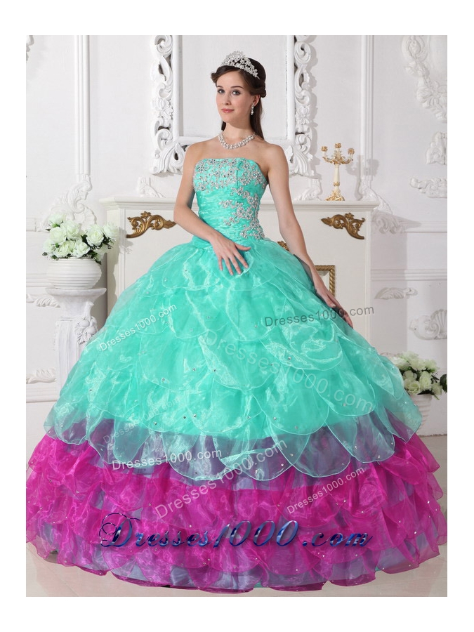2014 Colorful Puffy Strapless Quinceanera Dresses with Appliques