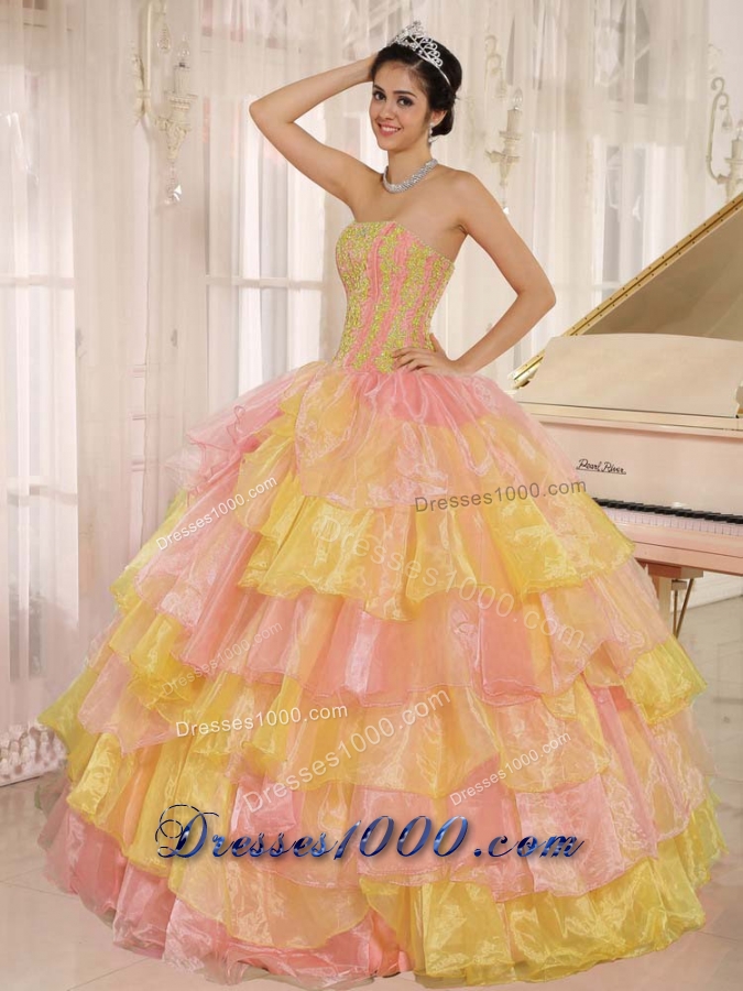 Ruflfled Layers and Appliques 2014 Colourful Quinceanera Dresses Customize