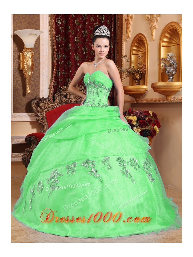 2014 Gorgeous Puffy Sweetheart Green Quinceanera Dress with Appliques and Beading