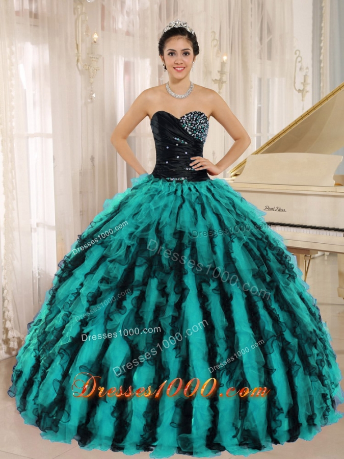 Elegant Beading and Ruffled Sweetheart 2014 Multi-color Quinceanera Dresses