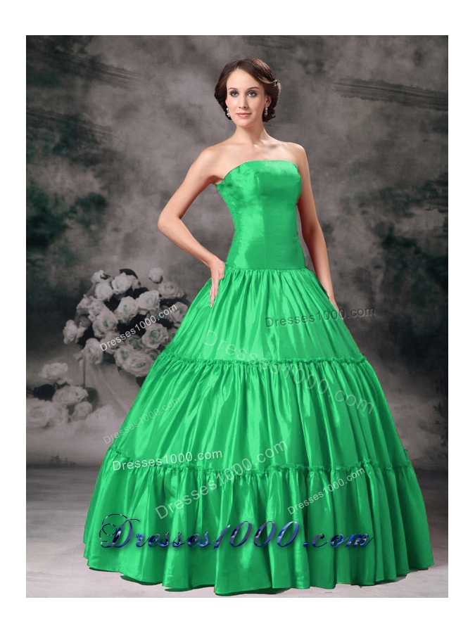Classical Green Puffy Strapless Ruching Quinceanera Dress for 2014