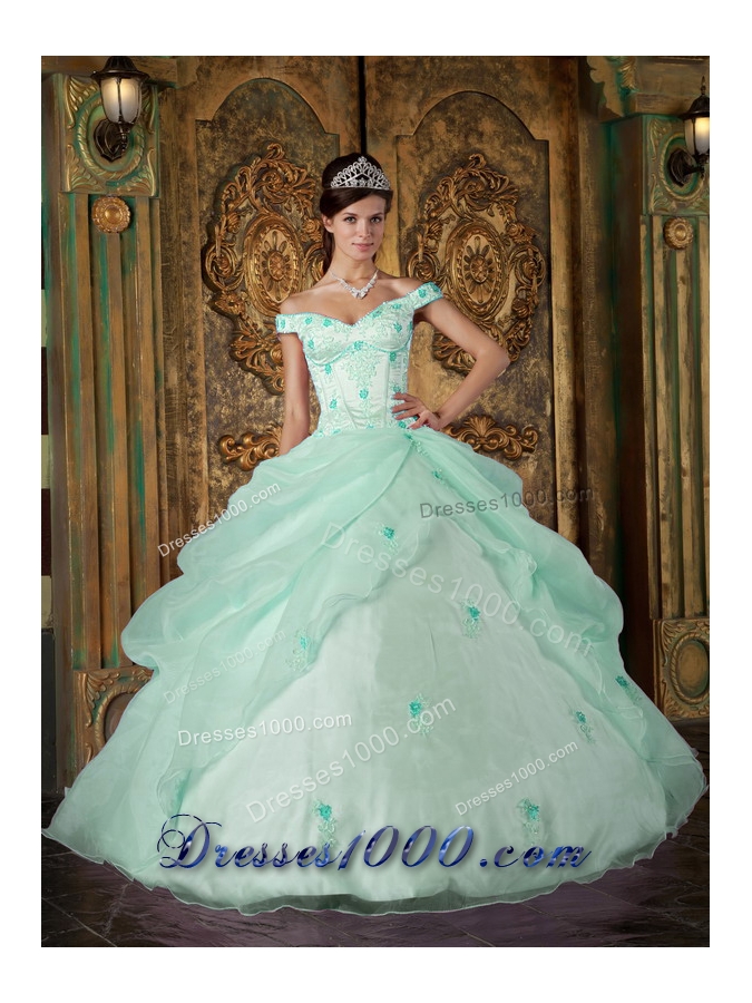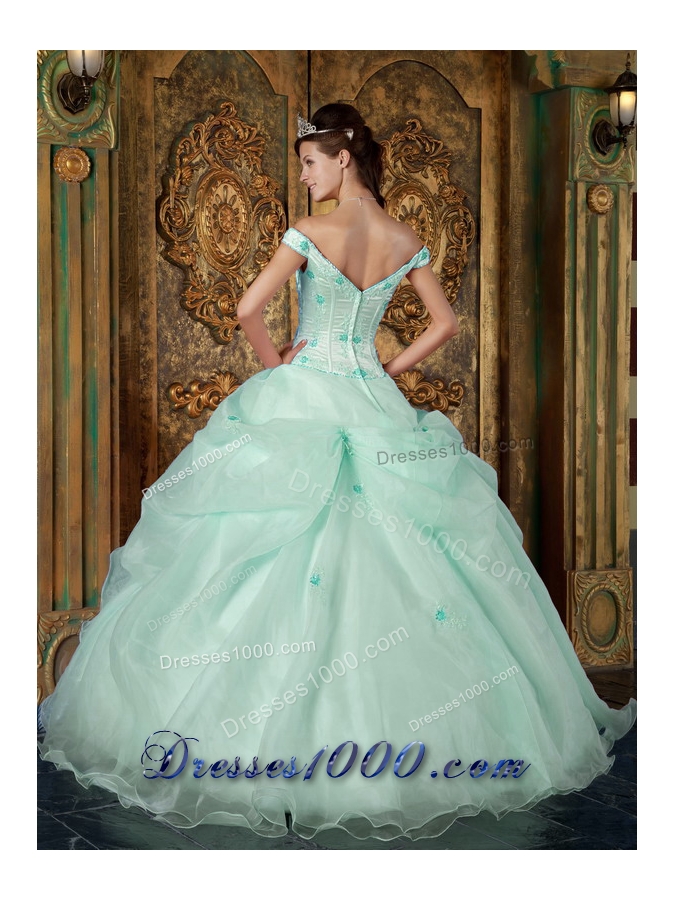 Cute Apple Green Puffy Off The Shoulder Appliques Quinceanera Dresses for 2014
