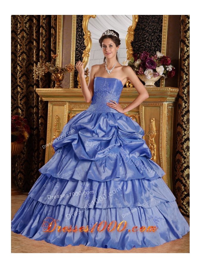 Puffy Strapless Pick-ups and Beading Quinceanera Dress with Ruffled Layers