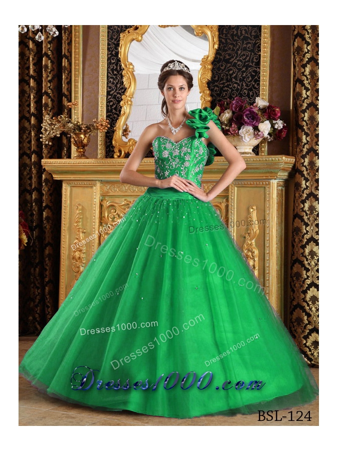 Brand New Green Princess One Shoulder with Beading Quinceanera Dress for 2014