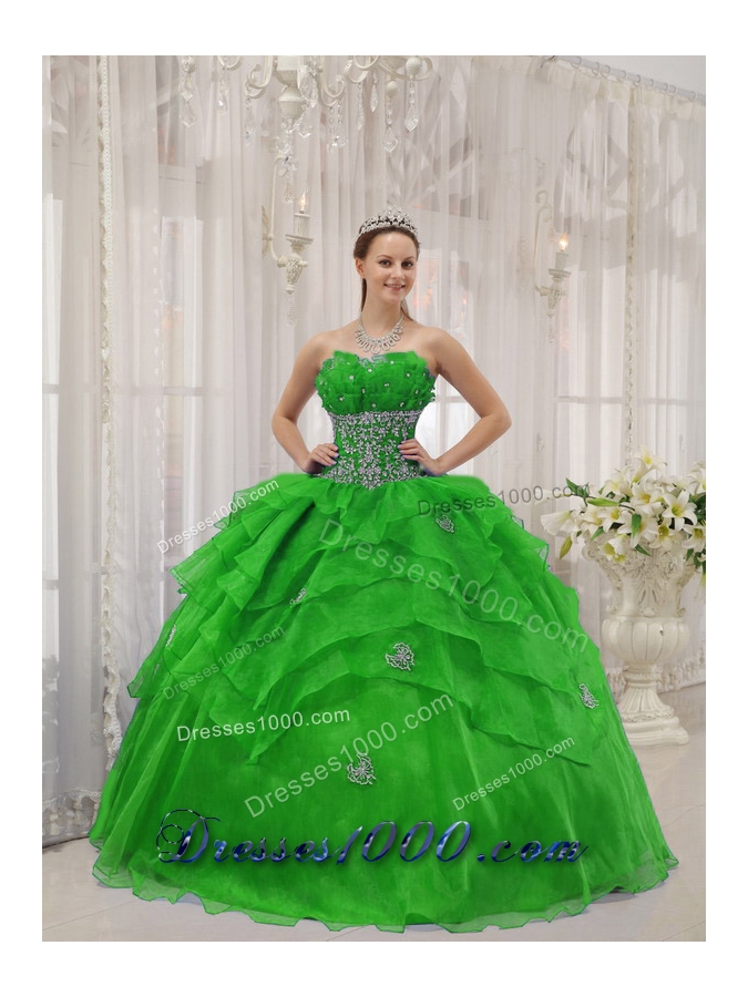 The Super Hot Puffy Strapless with Beading and Ruffles for 2014 Green Quinceanera Dress