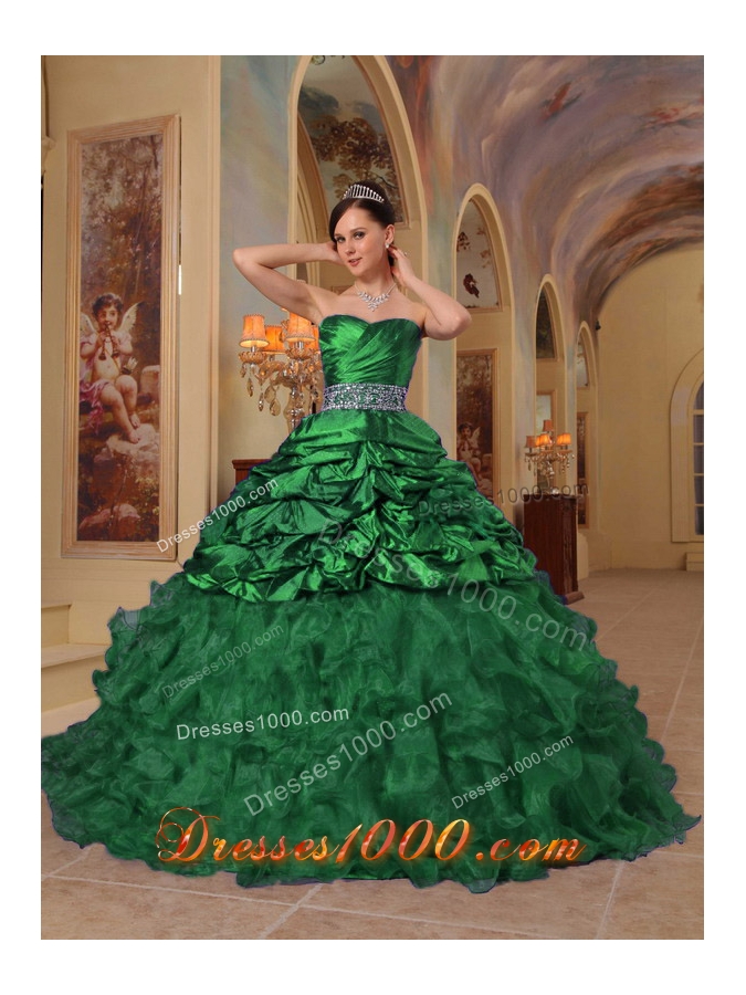 Dark Green Puffy Sweetheart with Pick-ups and Beading for 2014 Quinceanera Dress