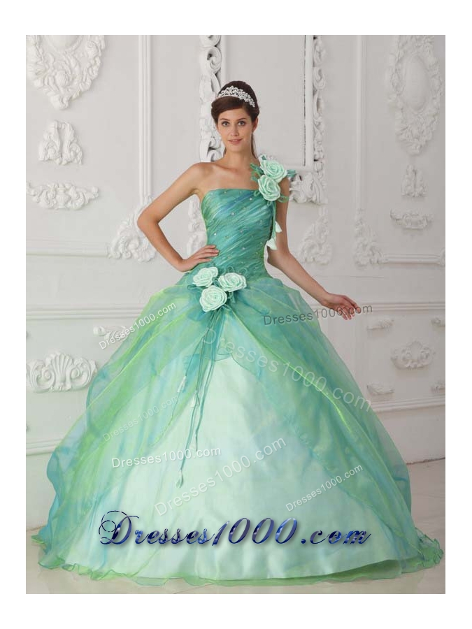 Cute Puffy One Shoulder with Beading and Hand Made Flowers For Quinceanera Dress