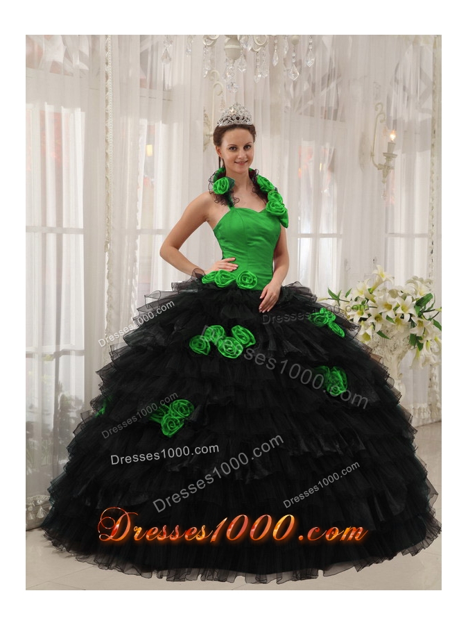 Puffy Halter for 2014 Hand Made Flowers Quinceanera Dress with Ruffled Layers