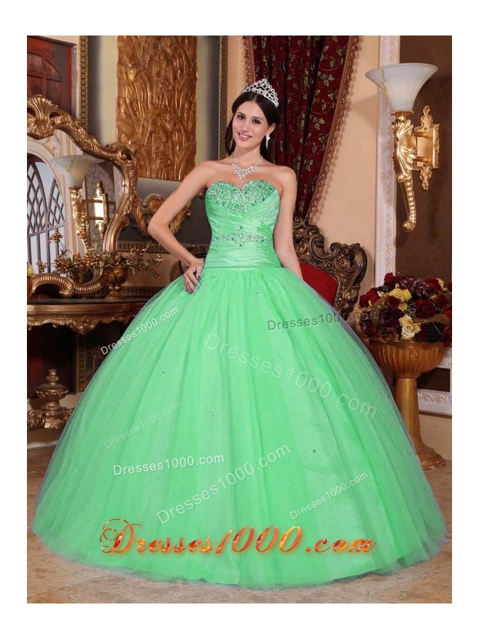 Puffy Sweetheart with Beading and Ruching for 2014 Green Quinceanera Dress