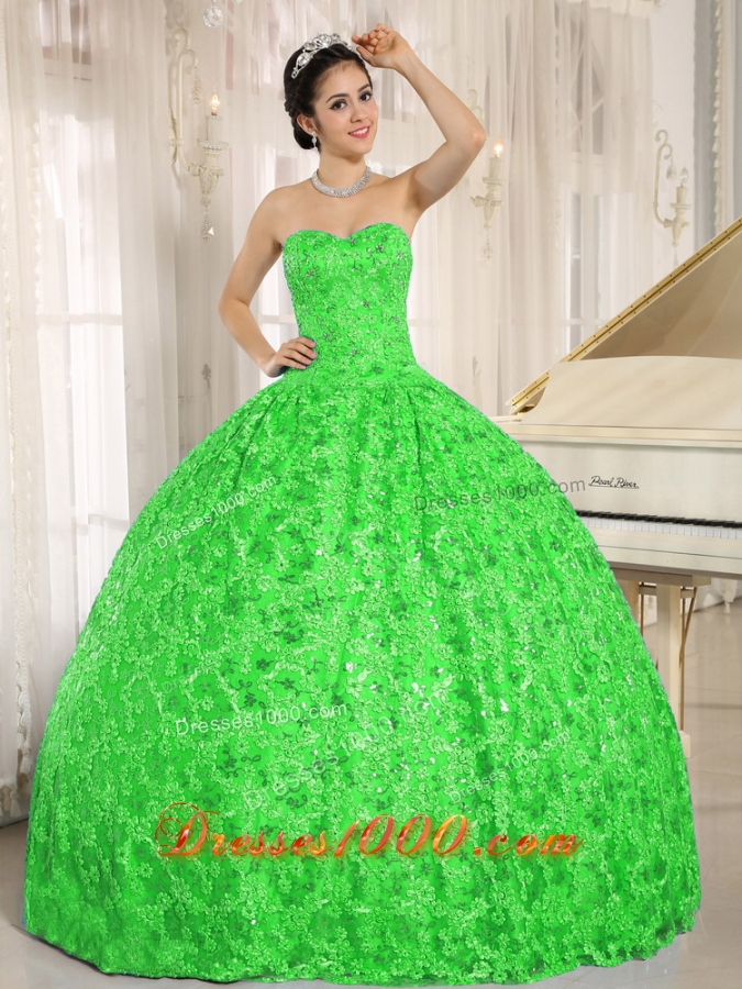 Embroidery and Sequins On Tulle Sweetheart Green Quinceanera Dress for 2014