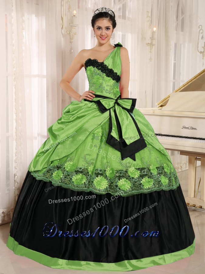 Pretty One Shoulder For 2014 Appliques for Green Quinceanera Dress with Bowknot
