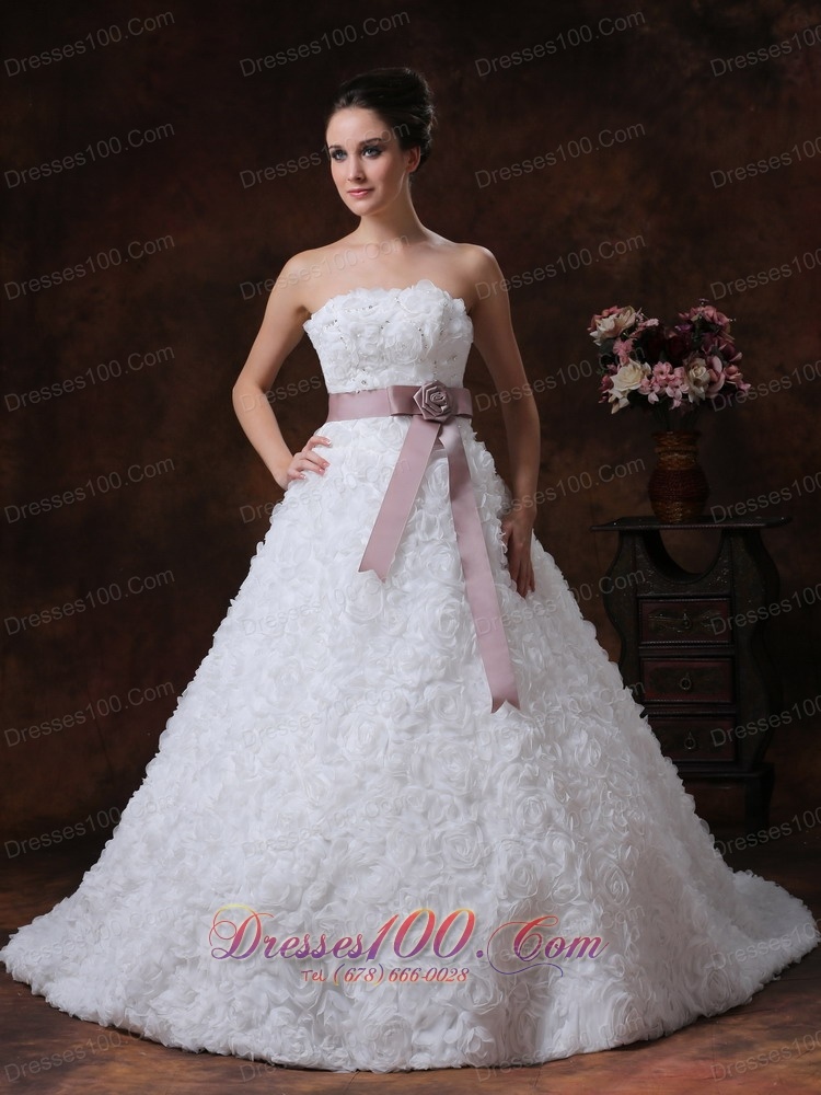 Rolling Flower Sash Wedding Gown A-line Maternity dress
