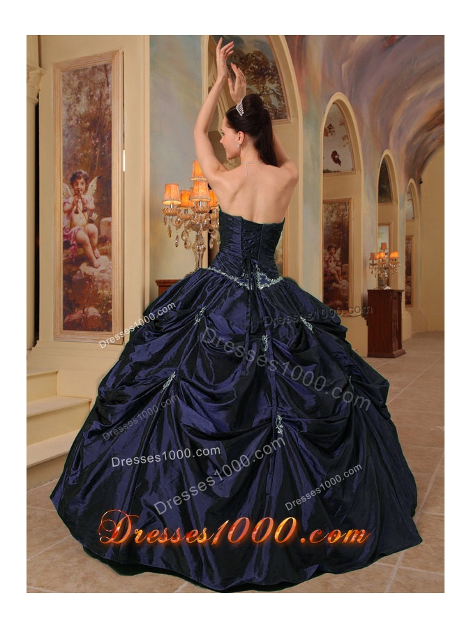 Romantic purple is the best way to show girl’s shy beauty. Sexy strapless design does not lack of stability and sex yet elegance. Beads embellished and exquisite applique make this gorgeous quinceanera dress sophisticated and tasteful. Fitted bodice with ruched waist can outline your slim figure and charming curve. The A-line skirt is floor-length and is made from soft smooth fabric, which are embellished with pretty rhinestones on the naughty pick ups. A lace up corset style closure in the back secures the dress in place.