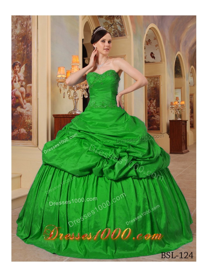 Classical Green Puffy Sweetheart with Pick-ups and Beading Quinceanera Dress for 2014