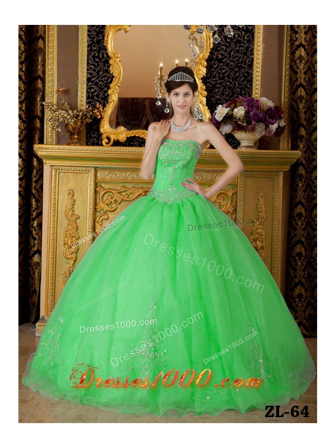 Petty Spring Green Puffy Strapless with Beading Decorate for 2014 Quinceanera Dress