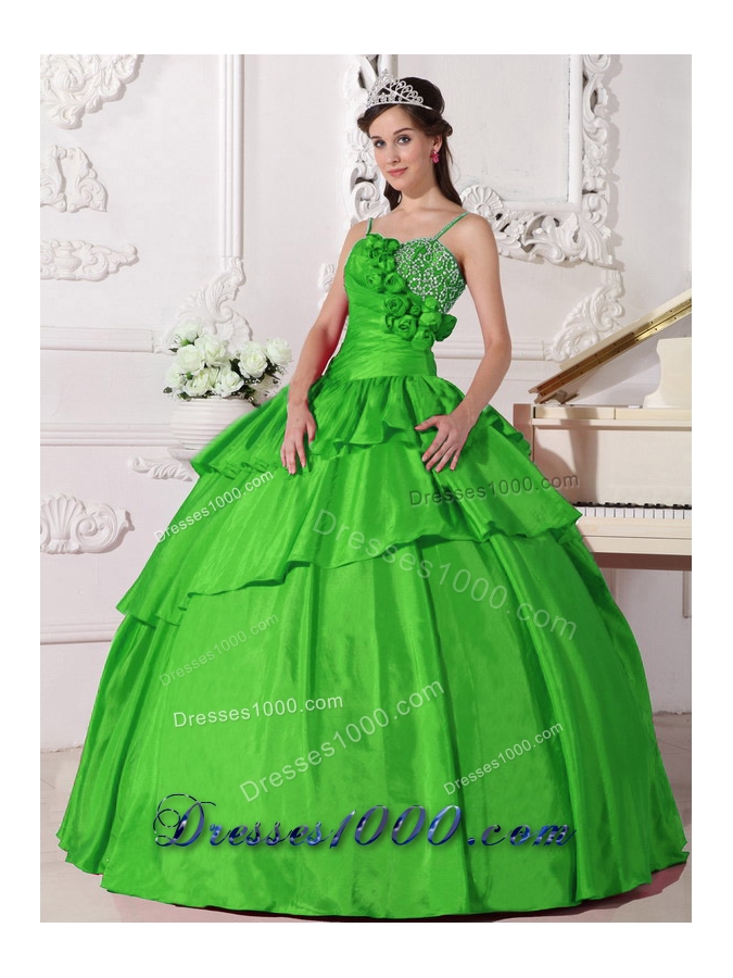 The Super Hot Spring Green Puffy Straps for 2014 Beading Quinceanera Dress
