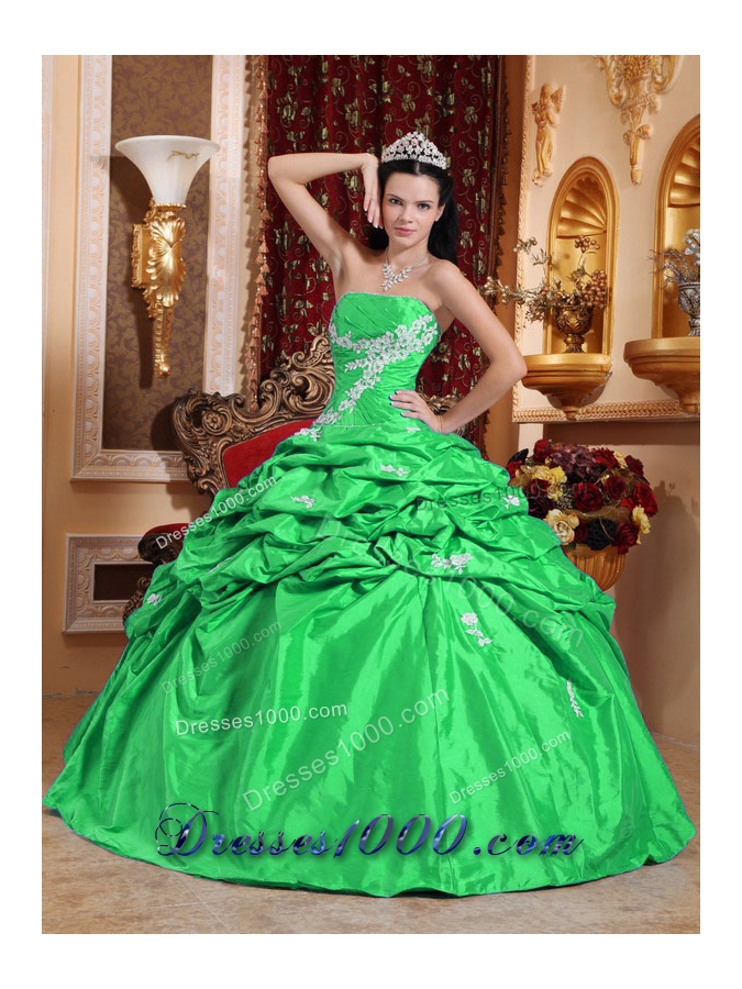 Luxurious Green Puffy Strapless for 2014 Quinceanera Dress with Pick-ups and Appliques