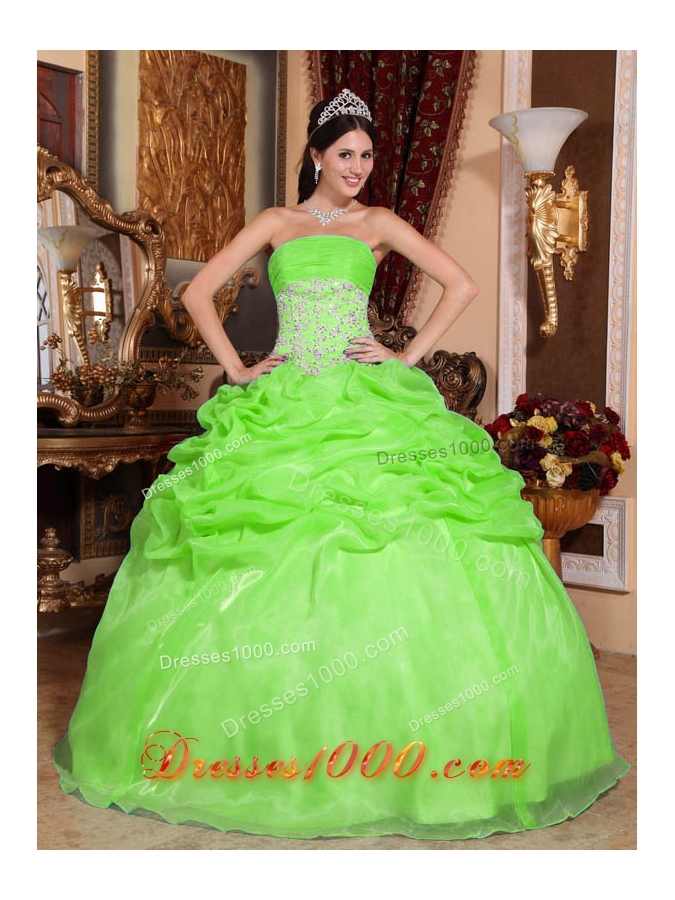 2014 Spring Green Puffy Strapless Appliques Quinceanera Dress with Pick-ups
